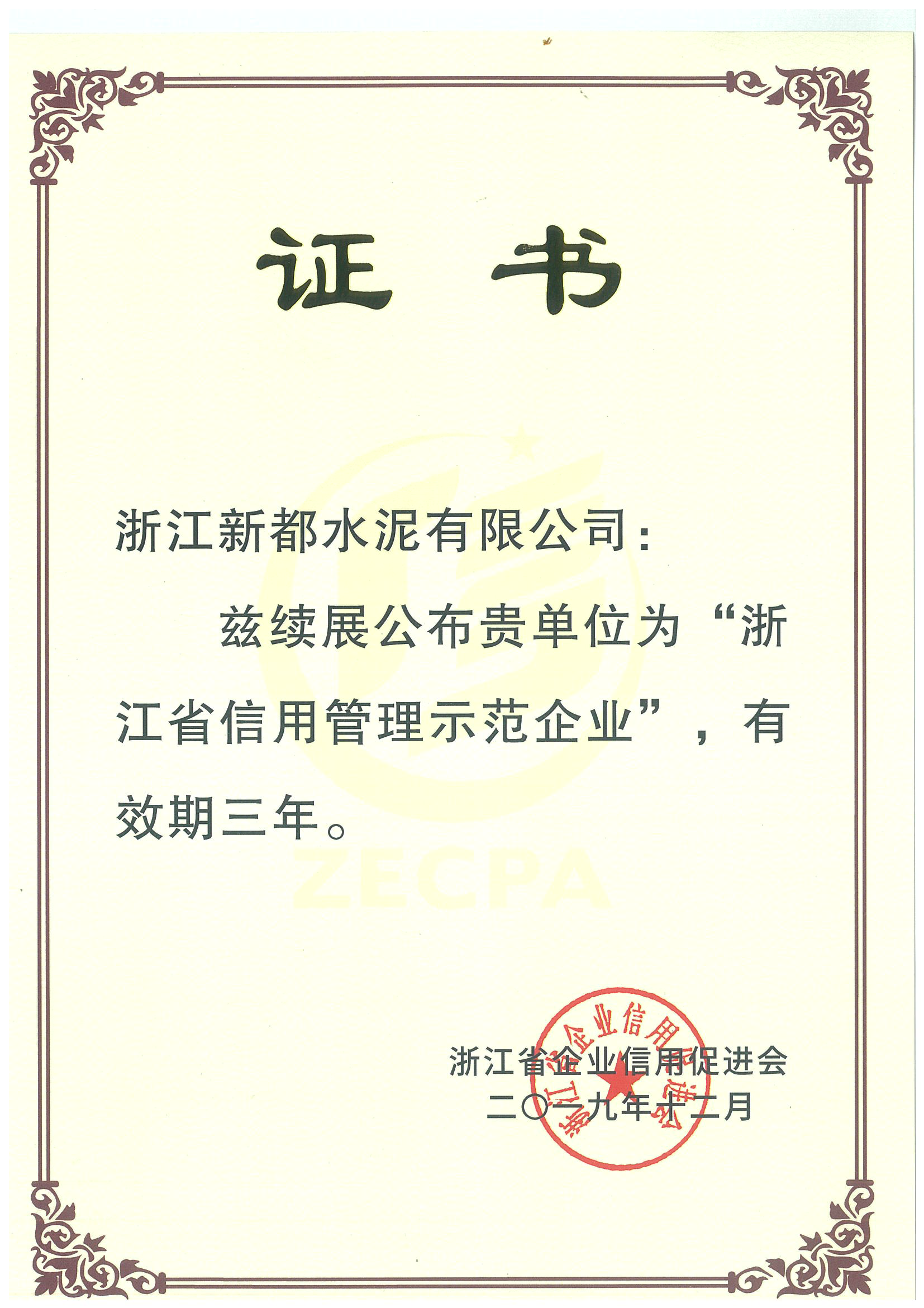 祝賀!新都水泥榮獲“浙江省信用管理示范企業(yè)”和“嘉興市信用管理示范企業(yè)”稱號